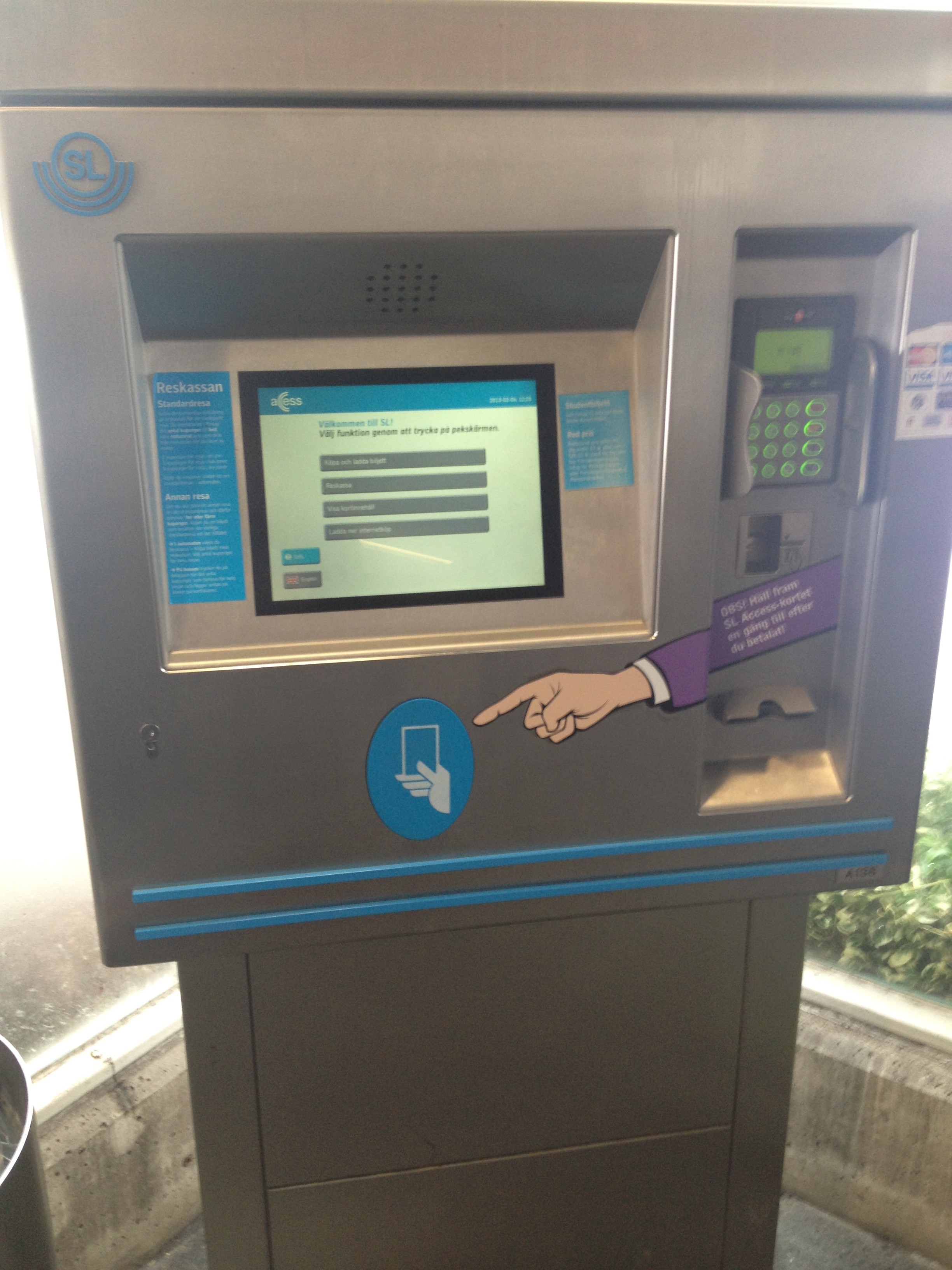 Nej, det lutar åt att jag fortsätter att betala mina SL-resor med reskassa. Dels för att få lite rabatt, men även för att det är smidigt att bara hålla kortet mot läsaren i spärren och slippa skicka SMS precis innan man ska ut och åka. Denna lösning är dock inte heller optimal av flera anledningar där den främsta är att det är nästintill omöjligt att fylla på reskassan i SL:s odugliga automater. Man står där och hör tåget komma medan man desperat försöker trycka på siffertangenterna för att ange det belopp som man vill ladda på. Det är inte lätt kan jag meddela. Det är faktiskt på gränsen till omöjligt att pricka rätt siffra på den ”pekskärmsteknik” som jag gissar är daterad till runt 1998 som finns i SL:s automater…