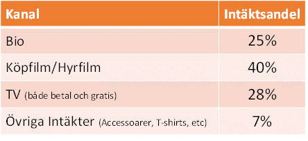 Det är alltså en betydande del av intäkterna som redan idag kommer från ”Hemma-kanalerna” och biointäkterna står enbart för en fjärdedel av de totala intäkterna när det gäller film.